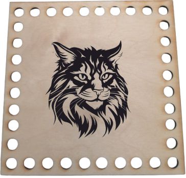Drevené dno na košíky s milou fotogfiou Mačka. Vytvorte si dekoráciu do svojho interiéru alebo darujte háčkovaný košík ako originálny darček vlastnej výroby.